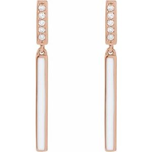 14K Rose .06 CTW Natural Diamond & White Enamel Bar Earrings