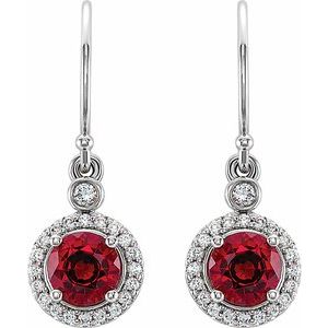 14K White Lab-Grown Ruby & 1/8 CTW Natural Diamond Halo-Style Earrings