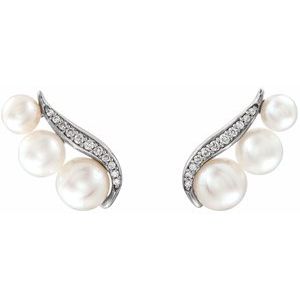 14K White Freshwater Pearl & 1/10 CTW Diamond Ear Climbers