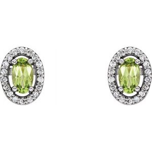 14K White Natural Peridot & .08 CTW Natural Diamond Earrings