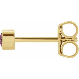 14K Yellow 2.5 mm Round Natural Pink Tourmaline Micro Bezel Single Stud Earring