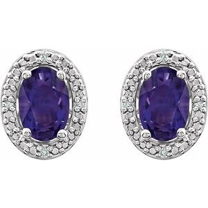 Sterling Silver Natural Amethyst & .01 CTW Natural Diamond Earrings