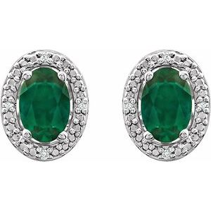 Sterling Silver Lab-Grown Emerald & .025 CTW Natural Diamond Earrings