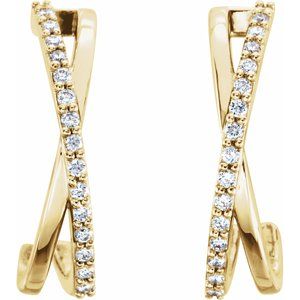 14K Yellow 1/6 CTW Natural Diamond Criss-Cross J-Hoop Earrings