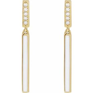 14K Yellow .06 CTW Natural Diamond & White Enamel Bar Earrings