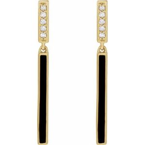 14K Yellow .06 CTW Natural Diamond & Black Enamel Bar Earrings