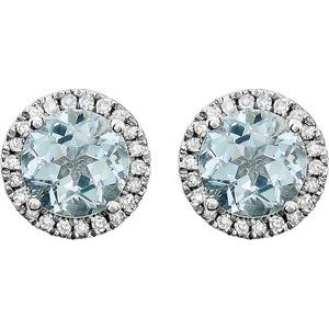 14K White Natural Aquamarine & .02 CTW Natural Diamond Earrings
