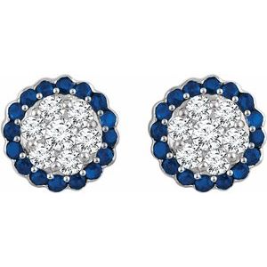 14K White Natural Blue Sapphire & 5/8 CTW Natural Diamond Earrings