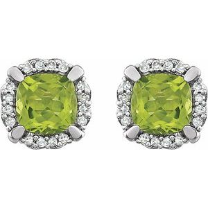 14K White Natural Peridot & 1/10 CTW Natural Diamond Earrings