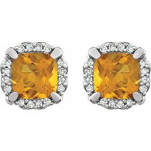 14K White Natural Citrine & 1/10 CTW Natural Diamond Earrings