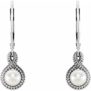 14K White Cultured White Freshwater Pearl & 1/6 CTW Natural Diamond Earrings