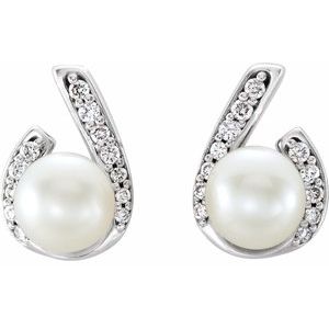 14K White Freshwater Cultured Pearl & .07 CTW Diamond Earrings