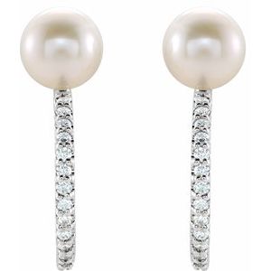 14K White Cultured White Freshwater Pearl & 1/6 CTW Natural Diamond Hoop Earrings