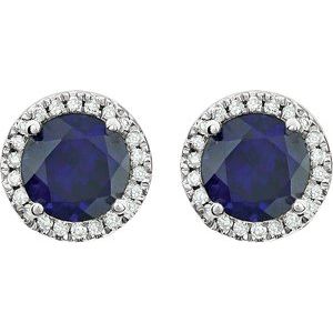 14K White Lab-Grown Blue Sapphire & 1/8 CTW Natural Diamond Earrings