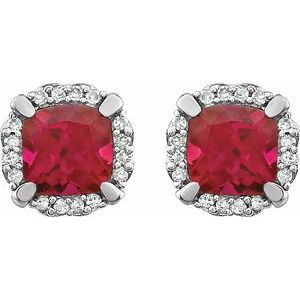 14K White Lab-Grown Ruby & 1/10 CTW Natural Diamond Earrings