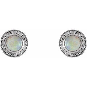 14K White 5 mm Natural White Opal & 1/6 CTW Natural Diamond Halo-Style Earrings