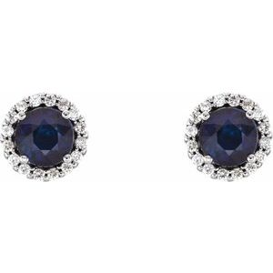 14K White 5 mm Natural Blue Sapphire & 1/8 CTW Natural Diamond Earrings