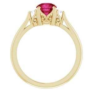 14K Yellow Lab-Grown Ruby & .06 CTW Natural Diamond Ring