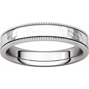 14K White 4 mm Flat Milgrain Band with Satin & Hammered Texture Size 8
