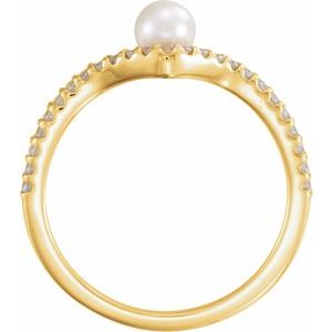 14K Yellow Cultured White Freshwater Cultured Pearl & 1/6 CTW Natural Diamond V Ring