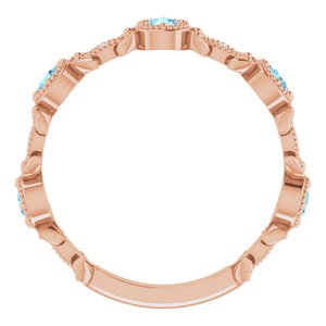 14K Rose Natural Aquamarine & .03 CTW Natural Diamond Leaf Ring