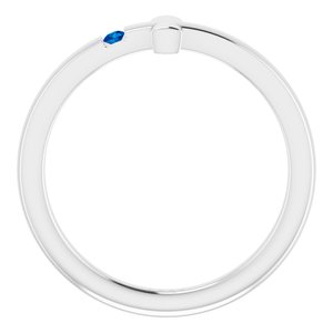 14K White Natural Blue Sapphire Youth Sideways Cross Ring