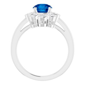 14K White Lab-Grown Blue Sapphire & 1/8 CTW Natural Diamond Ring
