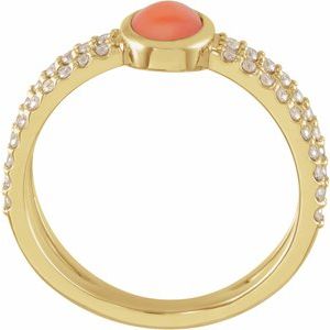 14K Yellow Natural Pink Coral & 3/8 CTW Natural Diamond Ring