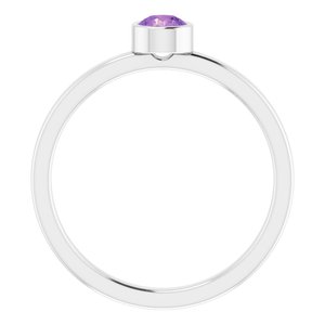 Rhodium-Plated Sterling Silver 4 mm Imitation Amethyst Ring
