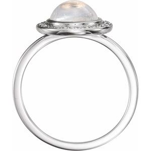14K White Natural Rainbow Moonstone & 1/8 CTW Natural Diamond Halo-Style Ring