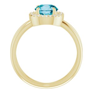 14K Yellow Natural London Blue Topaz & 1/10 CTW Natural Diamond Halo-Style Ring