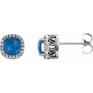 14K White 7x7 mm Cushion 4-Prong Halo-Style Earring