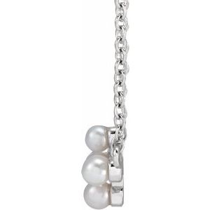 Sterling Silver Cultured White Seed Pearl Sideways Cross 16-18" Necklace