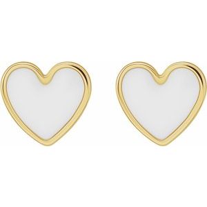 14K Yellow 5.9x5.5 mm White Enamel Heart Earrings